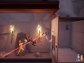 采用低多边形建模搭配深紫与猩红主色调,塑造出充满压迫感的深渊场景,鸽子羽毛飘落特效强化暴力美学。