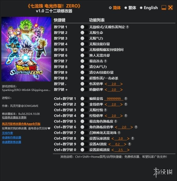>>>《七龙珠:电光炸裂!ZERO》v1.0二十二项修改器风灵月影版