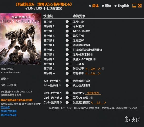 >>>《装甲核心6》v1.0-v1.05十七项修改器风灵月影版