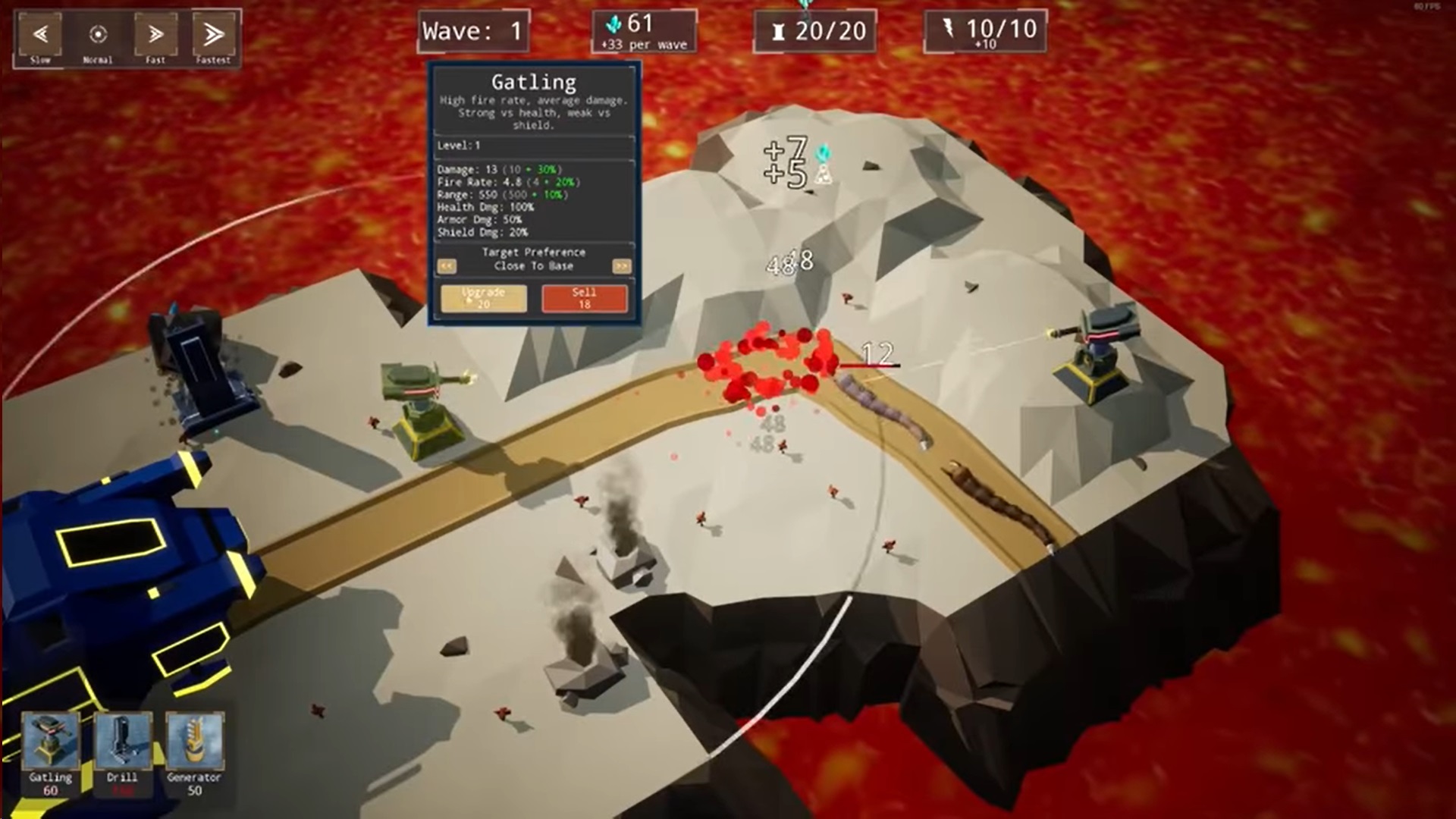 矿物防御(Mineral Defense)融合塔防与肉鸽元素,采用程序生成的关卡设计,玩家将在一个不断扩展的世界中面对不断演变的挑战。游戏的核心在于通过策略安排和资源管理,构建强大的防御系统,并运用各种升级和组合来击败敌人。