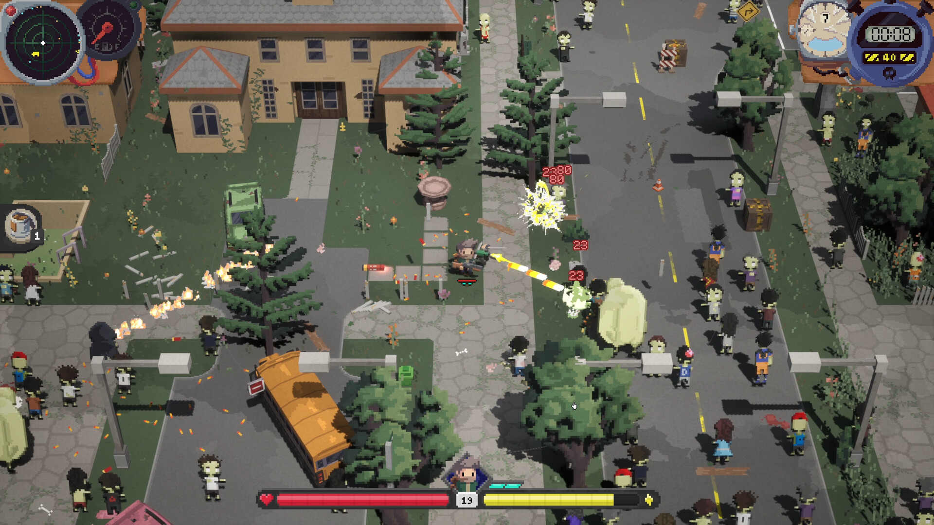 《死亡日:狂杀末路》是一款融合roguelike元素的2.5D像素风僵尸割草游戏,将背包管理策略与爽快的战斗体验完美结合。玩家将驾驶巴士在末日世界中展开惊险旅程,每个停靠站都是一场生死考验,需要合理分配燃料、收集强力装备,并在有限的背包空间中巧妙组合各种物品。