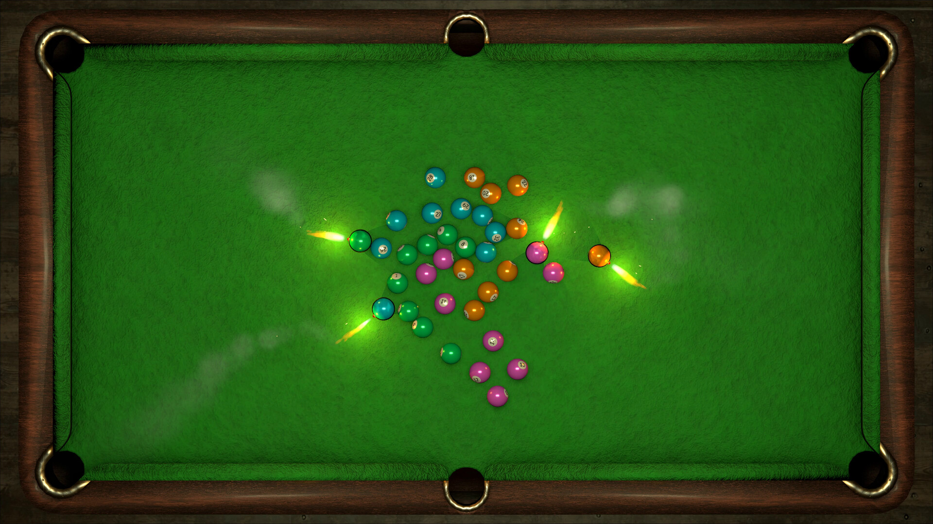 玩家控制火箭动力的台球,目标是首先将自己的球打入袋中。游戏保留了经典台球的基本规则,但加入了火箭动力的元素,使得游戏更加快速和富有挑战性。