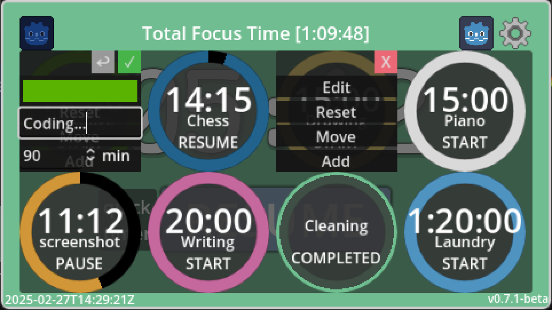 Polyfocus提供了基本的番茄钟功能,适合那些只需要简单计时器的用户。尽管功能有限,但仍然支持独立的任务计时和保存设置。