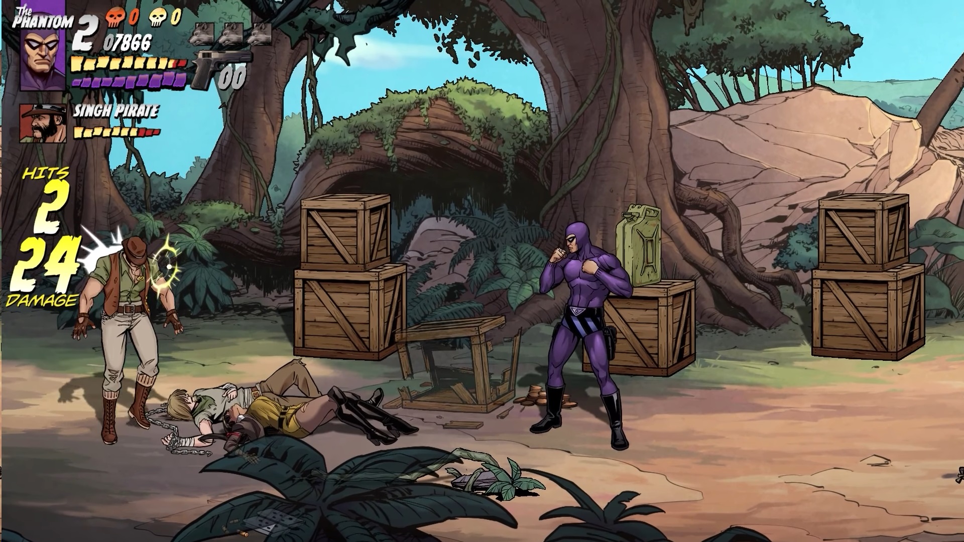 基于经典漫画角色的横版格斗游戏《幻影侠(The Phantom)》,旨在重现这一漫画史上首位穿着制服的英雄的传奇故事。玩家将体验到紧张刺激的战斗与丰富的叙事,探索幽灵行者与他的伙伴如何共同对抗邪恶势力,维护正义与秩序。