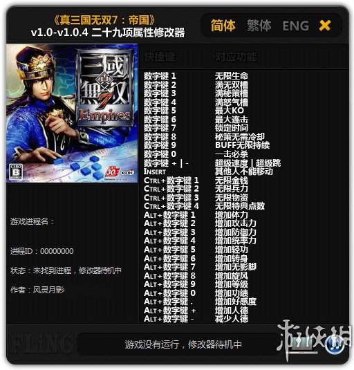 >>>真三国无双7:帝国 v1.0-v1.0.4二十九项修改器风灵月影版