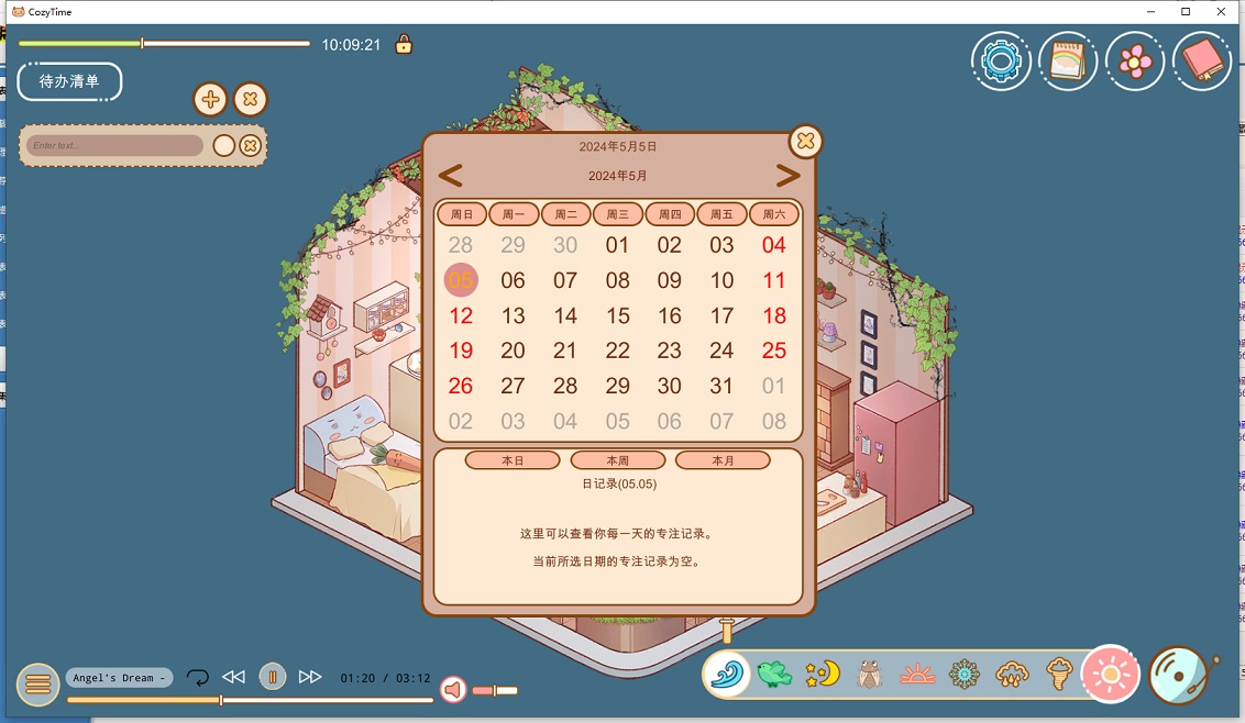 专注期间树屋自动生成时光露珠,转化为浇灌精灵植物的养分,连续完成番茄钟可触发彩虹灌溉特效