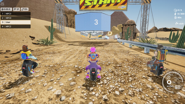 移动版(2D竞速):采用复古像素美术风格,赛道以明快色调呈现,搭配三位个性角色每位角色拥有专属语音台词与造型辨识度。