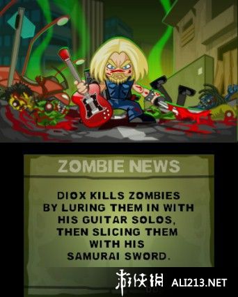 除了节奏挑战外,玩家还需要运用战斗策略,利用Diox的武士刀和吉他技能来对抗不同类型的僵尸。