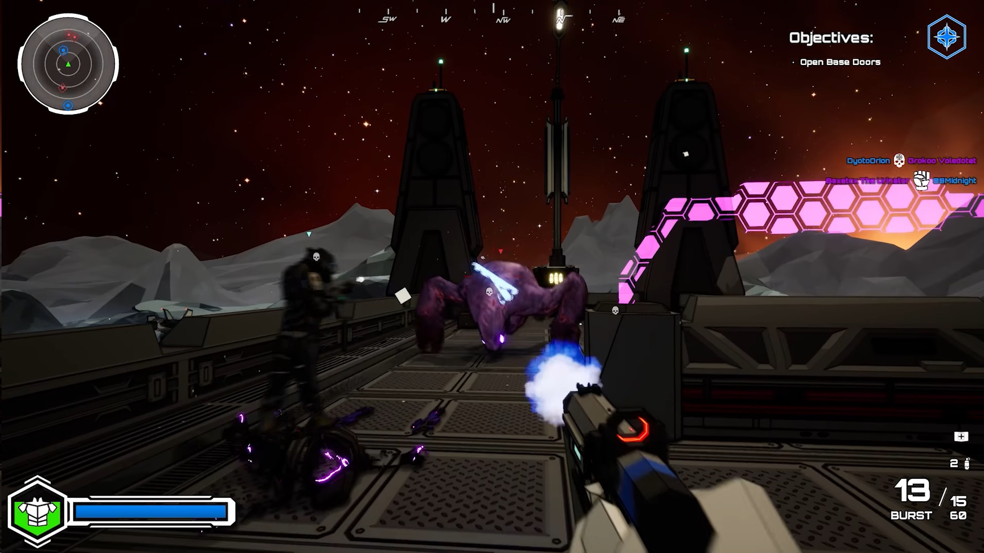 玩家可以在多种PvP模式中与其他玩家竞争,例如夺旗、征服和自由混战。玩家可以选择扮演人类海军陆战队或Gacrux外星人,每方都有独特的技能和玩法。PvP比赛节奏快,考验玩家的反应速度、战术意识和团队配合。