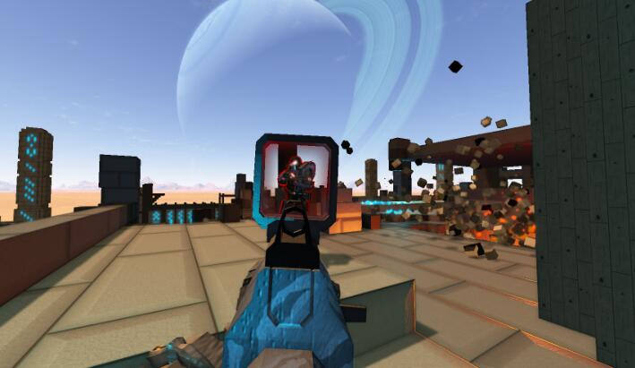 《星域边缘》是一款由澳洲独立研发团队开发的以未来的银河系作为舞台的8V8对战FPS,玩家可以装备各种武器,并选择适合自己游戏风格的地图和模式。本作最大的特征是构成地图的所有方块都是可以破坏的,基于此,玩家可以破坏俯瞰全地图的高铁使其倒塌,也可以破坏对手所在建筑物的屋顶进行突袭,整个地图都将成为你把握时机运筹制胜的道具,因此学会适应地图的变化将是很重要的一点。