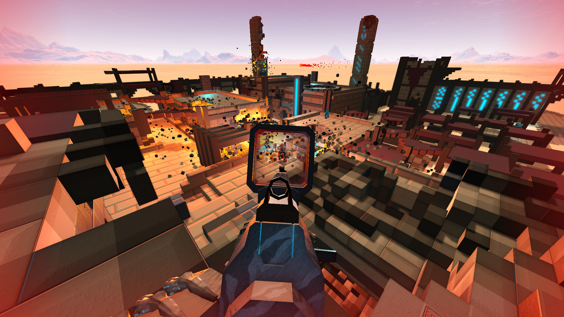 游戏采用像素风格,地图由大小不一的方块拼接而成,类似于《我的世界》。无论是建筑模型还是枪械,都呈现出鲜明的像素风格。
