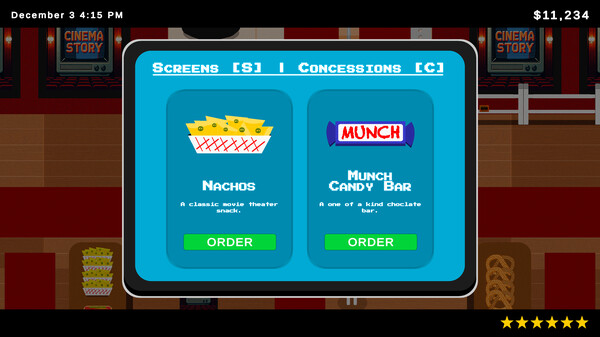 玩家从一个简陋的小影院开始,逐步解锁更多设施和服务,如爆米花机、饮料机、豪华座椅、3D技术等。通过升级影院设施,吸引更多的顾客,提升影院的声誉。