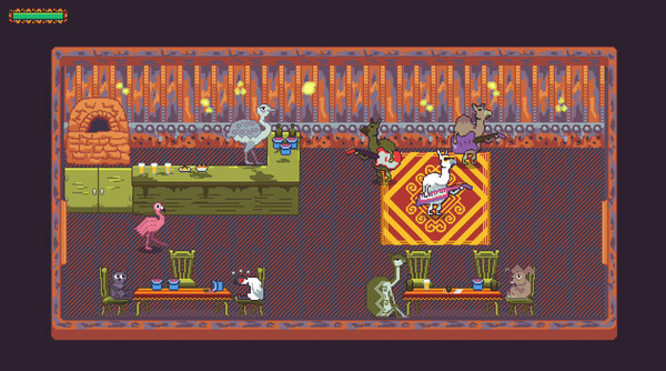 《El Salar》游戏中玩家同时控制着一个唯一的“单人游戏合作”模式,同时控制着火烈鸟的Galaxia,每个角色都在协调练习中用一只手控制,要求他们共同努力解决难题并到达神秘的上帝伊利拉(Illapa),收集钥匙并到达“老板”房间。避免狐狸和陷阱或利用它们来发挥自己的优势!