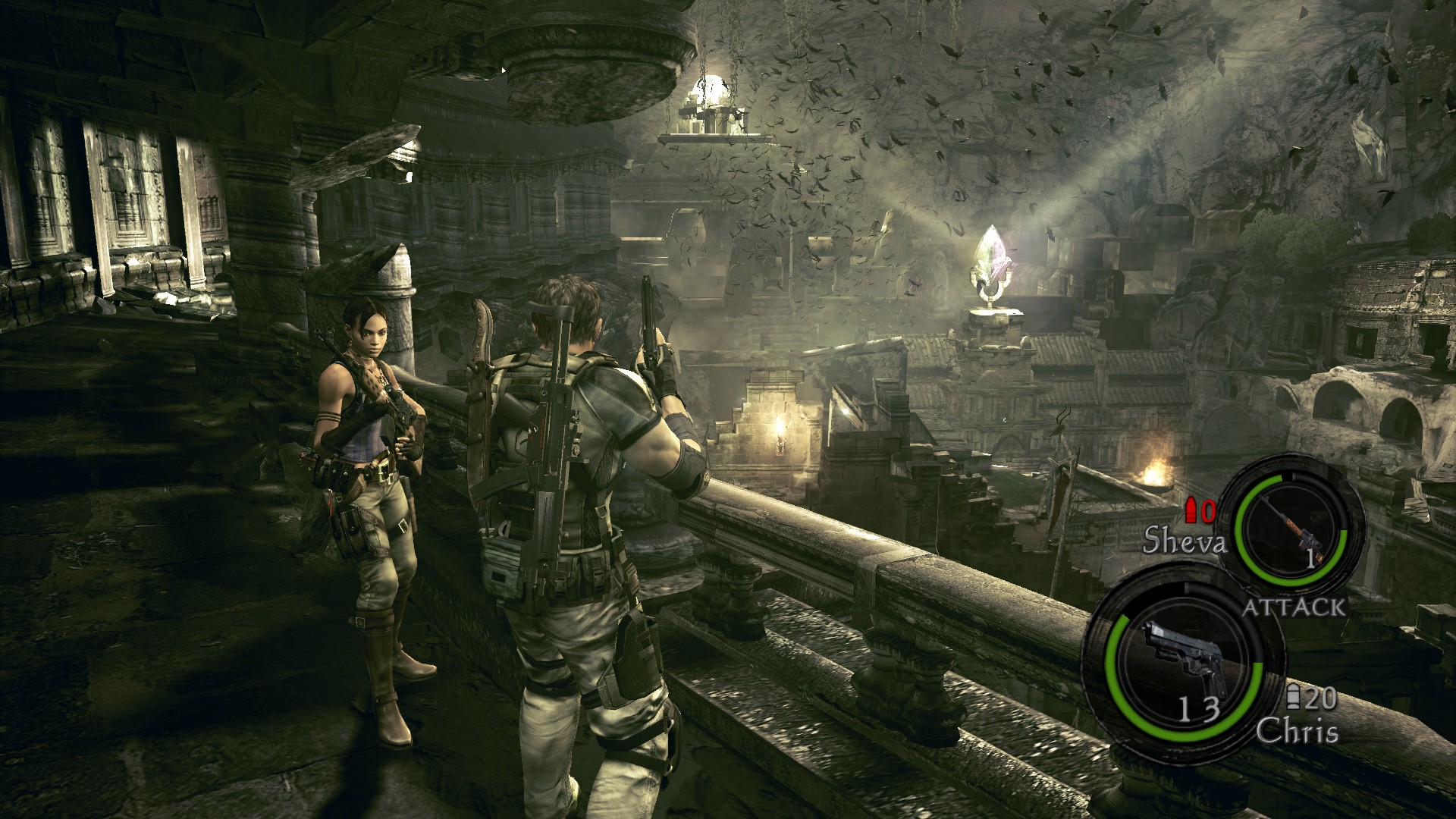 游戏支持两名玩家一起游戏,一名玩家控制克里斯,另一名控制谢娃·阿洛玛,可以通过合作解决游戏中的挑战。