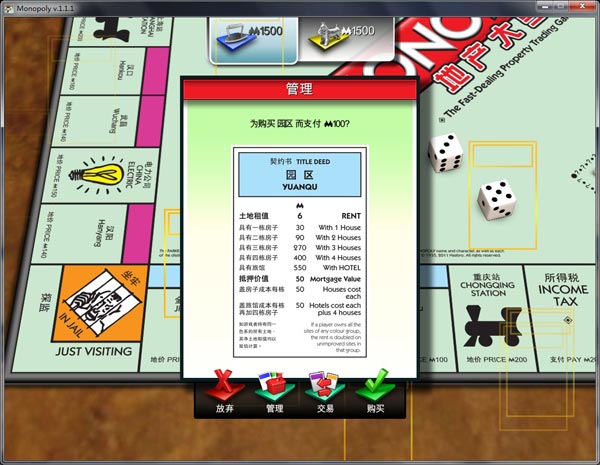 EA出品的大富翁游戏。Monopoly,又名大富翁、强手棋,是一款经典的多人策略棋类游戏。参赛者分得游戏金钱,凭运气(掷骰子)和交易策略买地、建楼以赚取租金,英文原名Monopoly意为“垄断”,因为最后只得一个胜利者,其余均破产收场,游戏的设计当初旨在暴露自由资本主义的弊端,据估计,自1904年最初版本推出以来,大富翁是世上最多人玩过的桌面游戏,人数超过五亿。