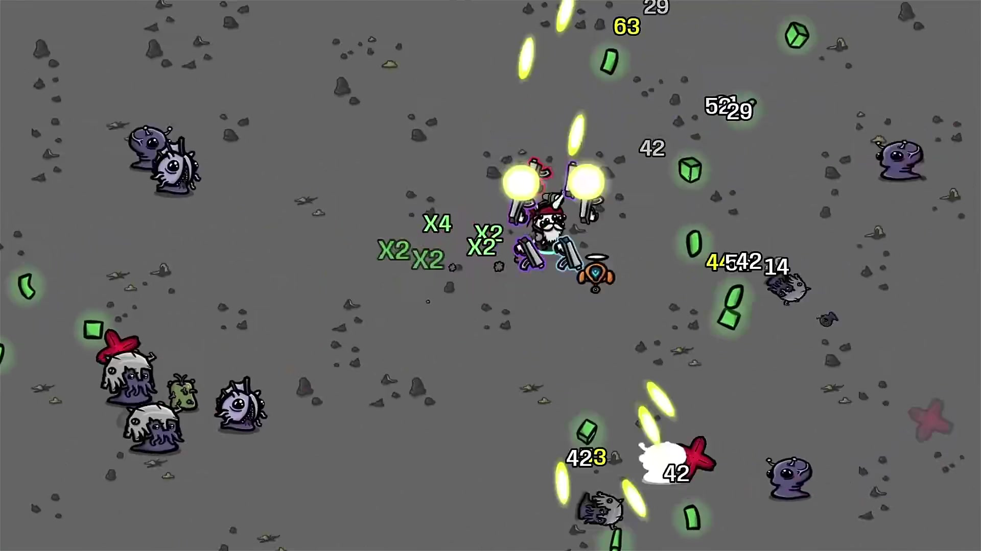 土豆兄弟(Brotato)是一款自上而下的竞技场射击轻度肉鸽动作策略游戏,玩家将在游戏中扮演一个同时使用6种武器以击退成群外星人的土豆。从各种特征和道具中进行选择,创造独特的建筑并生存下去,直到救援到来。