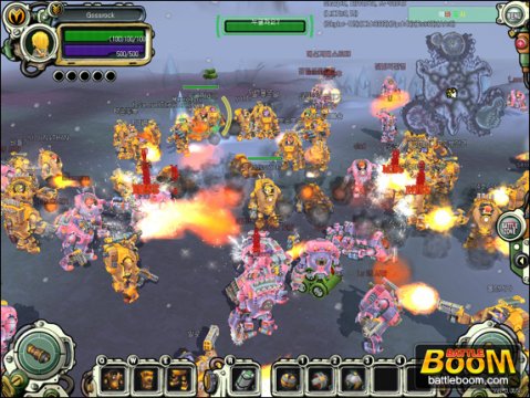 《Battleboom》是导入大规模集体战斗的战略和RPG成长概念的MMO战斗游戏。游戏中把外形奇怪的地球人分为3个国家,为了生存进行激烈战斗的故事为背景进行,玩家可以扮演3个国家的任何兵种进行游戏。