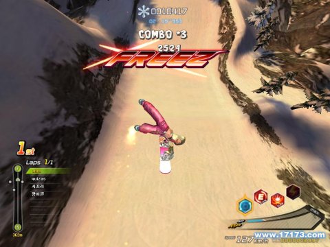 韩国Studio Brownie公司开发的新滑雪板网络游戏《Freez on Air》,是公司继对战动作网游《Gemfighter》之后开发出的第二款网游。其最主要特点是每个角色都拥有80多个丰富的动作,玩家可以在进行游戏当中体会到现实般的滑雪板所带来的乐趣。