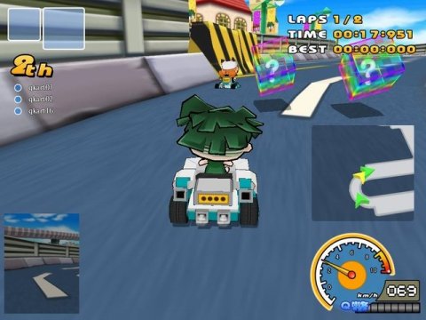 《QKart》是崇凯科技自制研发的 Q 版 3D 多人竞速赛车游戏,玩法简单易上手,比赛不拘于一般竞速形式,还加入了新奇道具战,玩家可利用在比赛中获得的道具来陷害对手争夺领先,使游戏变得更刺激更有趣,特殊的甩尾功能也是一大特点。