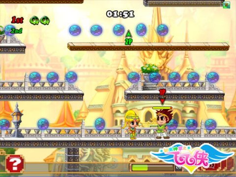 飞飞侠操作简便,玩家只需要用上下左右,ZXC空格8个键就可以了,相对街机格斗游戏的简便不少。为了让许多不擅长玩格斗游戏的MM也能享受到游戏的乐趣,玩家只要按一个键就能释放出绚丽的连续技能,而且还有专为MM设置的积分休闲模式,因此即使是不会玩游戏的MM也能把游戏玩的像模像样。地图采用《如来神掌》漫画中的经典场景,玩家可以在游戏时同时享受到中华建筑艺术的熏陶,并且由于地图是循环的,这在一般的格斗游戏中是不可想象的,即使是新加入游戏的玩家也可以利用地图的优势和道具的使用轻松战胜技术超群的对手。