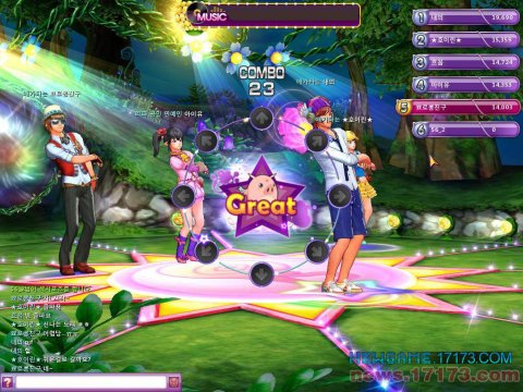 《Rhythm&Paradise》(暂译:节拍天堂)是韩国MGAME公司推出的动画风格舞蹈网络游戏。玩家在游戏中将成为童话世界般的村庄Fun Village的主人公,通过跳舞积累Fun Energy。同时,玩家还可以养成宠物、和工会成员聚会、参加知识问答。