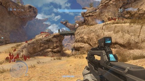 《光环OL》游戏背景设定在《光环3》之后的数年,但没有战役模式,斯巴达战士在一个名为Anvil的秘密空间站以对抗的形式训练,并测试新的技术,玩家所熟悉的系列经典武器和载具也都会登场。