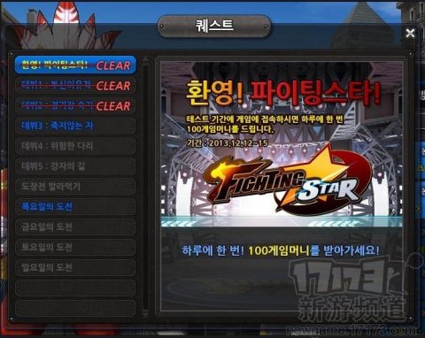 《格斗之星》(暂译,原名Fighting Star)为《穿越火线》开发商韩国SmileGate公司旗下一款3D漫画风格斗网游新作,玩家可以简单的利用两个攻击键组合发动各种战斗技能。该游戏目前公布了8种角色,如格斗家,忍者,摔跤手,恶魔等,但即使是同一个角色,根据装备的差异也可施展出不同的技能。比如,格斗家可施展的技能包括中国武术,跆拳道和泰拳等。