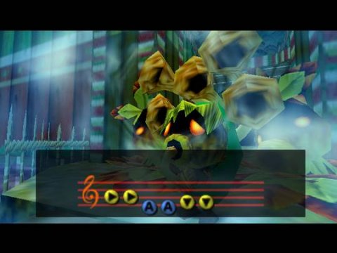 视频(0) 图集(1)游戏简介《姆吉拉的假面》是塞尔达传说系列的第六部游戏,并且是第二部采用三维图形的。第一部采用三维图形的是《塞尔达传说 时之笛》,即《姆吉拉的假面》的前传。游戏发生在塔米尼亚,该地是塞尔达传说系列故事发生地海拉尔的另类版本。游戏开始时骷髅小孩已将古老具有强大魔力的姆吉拉面具盗走。受到面具的邪恶力量影响,骷髅小孩把月亮吸引到朝塔米尼亚移动,计于三天后坠毁于该地。因而林克要在三天中不断来回以收集四大巨人的面具,在最后的六小时中把他们召唤出来,把月亮停止再往塔米尼亚下降。游戏进行主要集中在重复地经历三天循环,以及面具的使用上。游戏里林克学会的旋律控制了时间的流动,并开启了他必须征服的四座神殿入口。