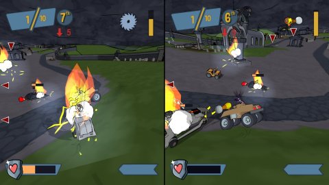 操控全世界最疯狂的卡通驾驶,并且使用荒唐的武器和古怪的竞赛场地陷阱摧毁你的朋友们。