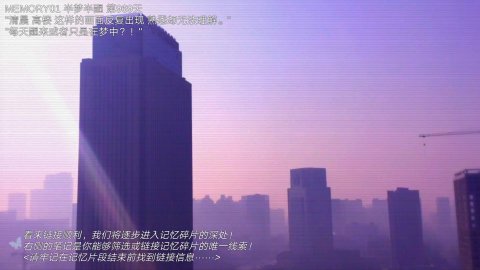 《搜索·迷城掠影》(The phantom of the city)是一款全动态影像的探索叙事游戏。游戏将玩家带入某人的记忆链接中,通过提示找到正确的记忆碎片,拼凑记忆背后的故事和真相。慢慢你会发现事情的真相远没有想象的那么清晰,也许每个人都会有自己的答案!