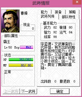 《三国志曹操传》是由日本光荣株式会社开发制作的一款战棋类游戏,是《三国志》英杰传系列的第五款,于1998年12月发行 。