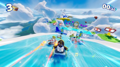 《一鹅当先》是一款最多可供40只企鹅互相撞击、爽快又吵闹的生存动作竞速游戏。游戏免费且支持跨平台游玩,你可以邀请任何人共同畅游!撞击对手、活用无敌滑板和近路,争取第一个到达终点吧!