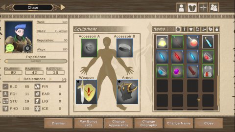 视频(0) 图集(1)游戏简介Your friend, the former Guild Master of the declining Adventurer Guild, has died and named you his successor. Will you lead the Guild to fame and glory? Or will it finally disband under your leadership?Our Adventurer Guild is a game about managing an Adventurer Guild. Accept quests to raise the reputation of your Guild. Lead your adventurers in quests to explore and battle foes in turnbased tactical combat. Keep an eye on the mood and relationships of your adventurers. Raise and grow them and watch as they make a name for themselves.FeaturesBecome the Guild Master of the Adventurer GuildManage your Guild and your adventurers. Do not let the Guild fall to ruin and lead your adventurers to a better future.Turnbased tactical battlesFight in deadly gridbased tactical battles against dozens of different enemies with their own unique skills. Take advantage of the Bravery System to push your adventurers to their limit. Will they overcome the odds and turn the tide of battle or will they break under the pressure?Memorable CharactersYour adventurers have their own traits and characteristics. Watch them grow and develop relationships with each other. Will they stay the way they are or will the life of an adventurer mark them?Build your AdventurerTrain your adventurers to become legends. Choose from a variety of different classes each with their own skill trees to explore. Customize their appearances and create a party to your liking.CraftingUse the materials your adventurers find on their quests and craft them items that will help them on their next adventure.Meet the CastMeet several Characters who will help you on your path to restore the Adventurer Guild. Each one with their own personal stories and personalities.