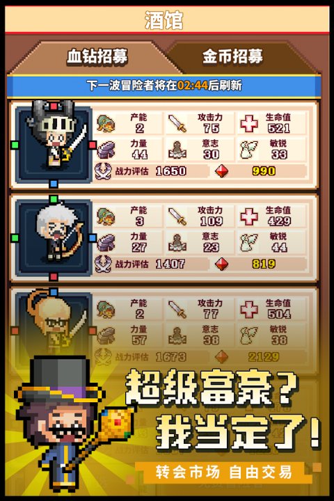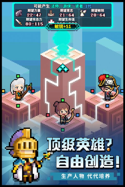 《冒险与深渊》由《冒险与挖矿》原班人马打造!能成长的像素风休闲放置手游!极具特色和具有才华的内容设计,相信不会让每位喜欢休闲放置手游的玩家失望~本作是一款放置养成类游戏。在游戏中,玩家主要的任务是培养冒险者和打造装备,然后使用他们去探索一个未知的洞穴。