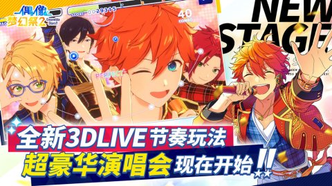 《偶像梦幻祭2》来啦,全新3d模式升级来袭!2020年1月17号中午12:00开启全平台预约。49位风格各异的美少年组成14个组合满足不同女性玩家需求,全方位展示“偶像们的一切”。【充分展现偶像们魅力的3D演唱会】玩家可以在这个模式中以3D角色的演唱会场景为背景,体验节奏游戏,享受豪华的3D MV表现和个性十足的偶像们带来的演唱会,支持玩家自由地设置C位。