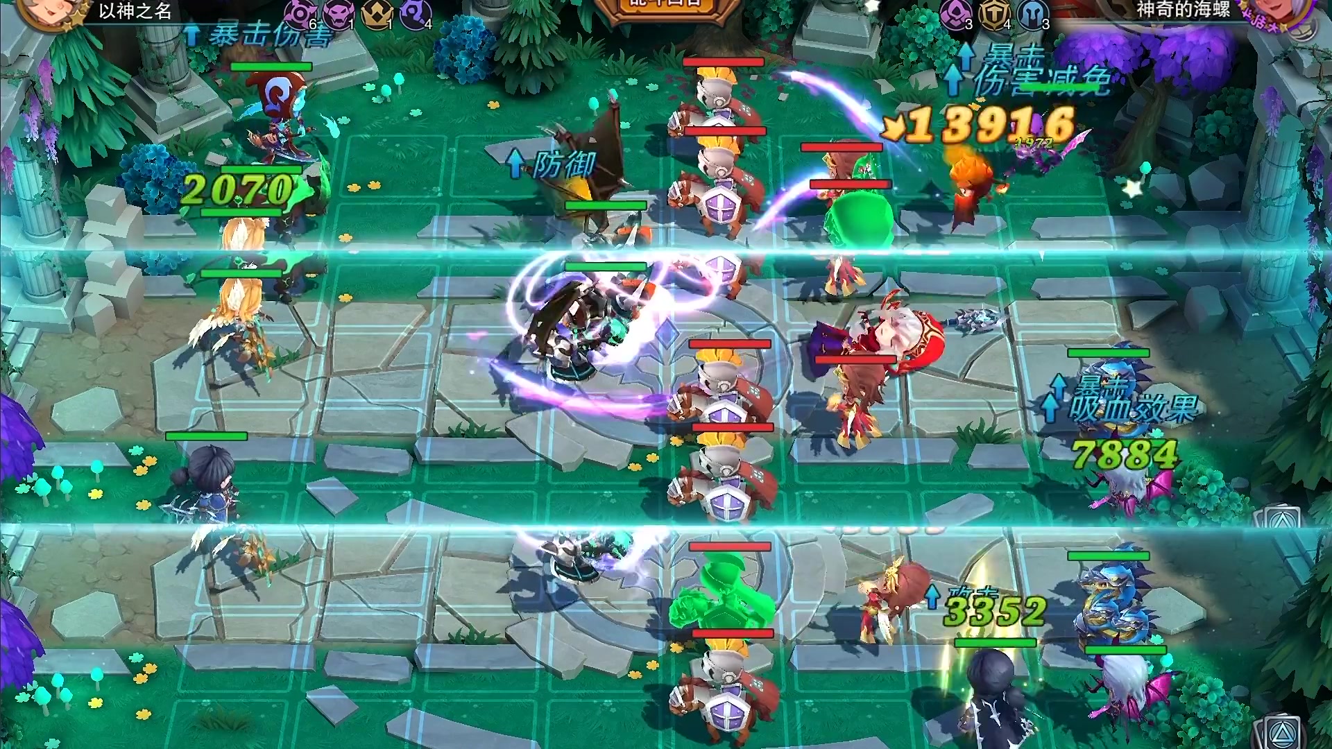 10vs10棋盘对战,通过战前阵容搭配和战斗中的技能选择,来取得对战的胜利。和一般卡牌点击图标释放技能不同的是,在大乱斗的战斗过程中,每一次释放技能都要根据当前的战斗局面来做出合理的选择,从而来达到最大的收益。你会惊奇的发现,其实你是在下棋...... 支持玩家实时对战。
