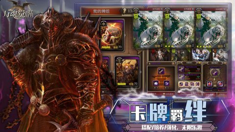 《万魂觉醒》是使用了百余张高品质写实风格美术的卡牌对战角色扮演类游戏。卡牌共分为人类,怪兽,妖精,条顿,天使,龙,恶魔七个种族与支援,防御,万能,攻击,策略类型的五个职业。通过种族,职业的组合,可搭配出无限种牌组,使用依照自己策略搭配出的牌组与其他玩家对战,从中获得成就感与乐趣。