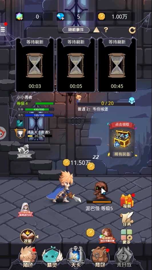 《小小勇者》是一款放置类养成游戏,游戏中你将扮演一位肩负重任的年轻勇者,为了拯救大陆,讨伐魔王,你必须不断地努力变强!通过点击游戏中的事件卡牌,你将在游戏中探索各种各样的随机事件,邂逅许多充满个性的有趣角色,他们将在你的冒险中为你提供支持和帮助!交易商品、聆听神谕、打造装备、养成精灵、铸造魔晶、结交佣兵、探索副本、收集咒文、参加祭典、觉醒神魂……你所参与的一切行为都将积累为战力,助你在冒险的道路上一往无前!