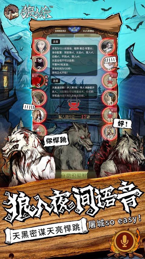 《狼人杀——官方唯一正版》是由网易代理的,市面上唯一一款拥有狼人杀相关知识产权的移动应用。《狼人杀官方》最大程度还原桌游面杀的玩法,预言家、女巫、猎人、守卫、白痴、狼王等全套角色应有尽有,同时每名玩家每*公平地享有120秒发言时间,坚决不设插麦、延时卡,坚持最严谨的游戏规则;画面表现上以个性鲜明的暗黑哥特式风格,营造出浓郁的诡谲氛围,呈现狼人杀文化的世界观,使得玩家在游戏时能快速“入戏”。