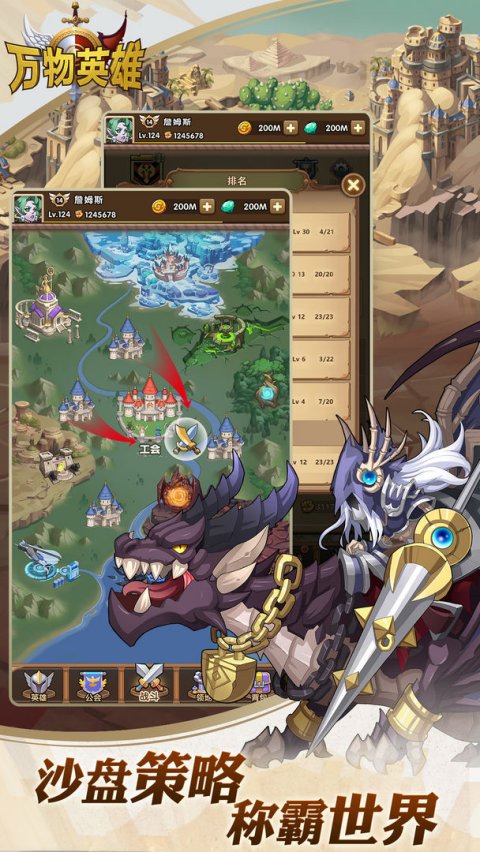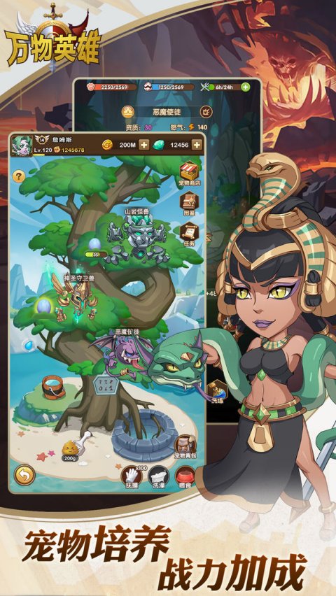 《万物英雄》是一款基于西方中世纪神话世界观背景的欧美卡通风格类放置卡牌RPG,融合了六大阵营300多张卡牌养成、100多种宠物模拟经营以及公会PVE,PVP,GVG等轻度塔防策略玩法。您可以在游戏内召唤天地间万物英雄,组建传奇队伍,培育可爱宠物,和公会战友们配合完成史诗级别的塔防攻防战,保卫自己的家园,重铸光明奥丁世界!
