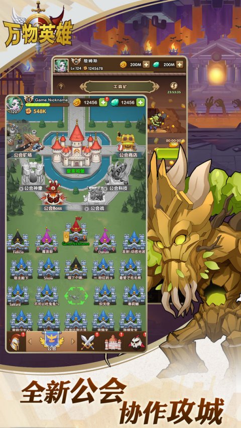 携手组建公会,开启全新史诗级团战副本,模拟多人塔防布阵,对抗激情一触即发,攻城略地,称霸世界,请记住每一个盟友的贡献都非常重要!