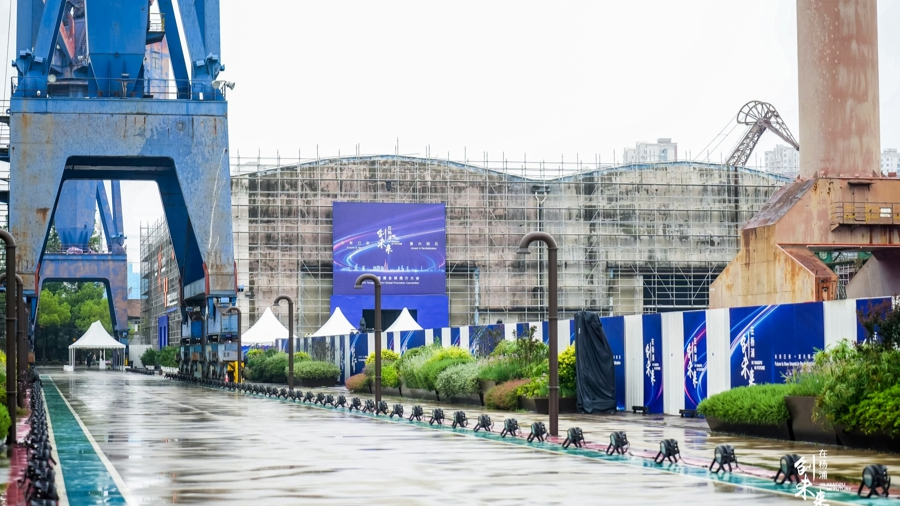 今年6月,2025杨浦全球推介大会在复兴岛船台公园举行。作为复兴岛首个即将开放的滨水公共空间,船台公园的前身是中华造船厂,这里见证了中国近代造船业的发展。