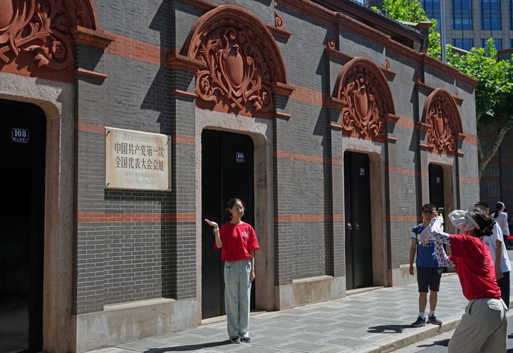 7月1日,人们在中共一大会址前留影。新华社记者 刘颖 摄