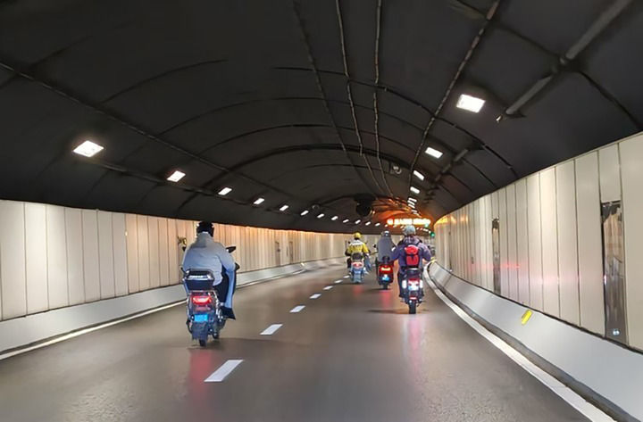 今年2月,上海推出一项便民举措:每日23时至次日5时,复兴东路隧道上层专门开放供电动自行车通行,这是上海首条可通行电动自行车的越江隧道。