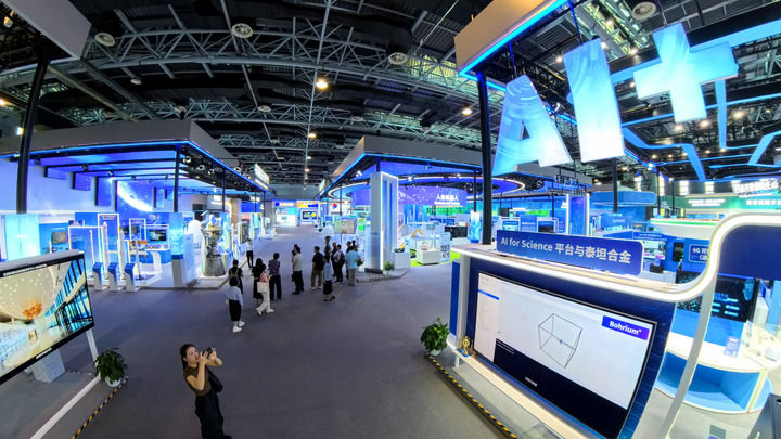 2025年6月20日,参观者在北京中关村展示中心“人工智能+”展示区域参观。新华社记者 鞠焕宗 摄