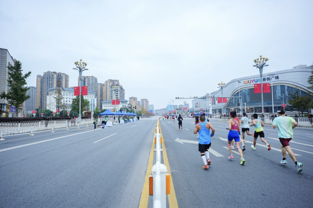 2024广安马拉松参赛选手通过吾悦广场。(组委会 供图)