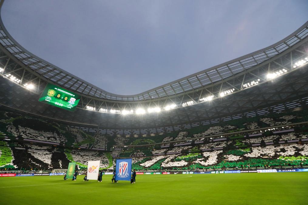 7月19日,北京国安队球迷在赛前观众席上打出巨幅TIFO(可覆盖看台的大型横幅或拼图)。新华社发(那宇奇摄)