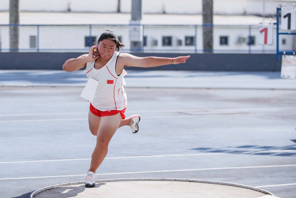 2023年8月21日,严子怡在U15世界中学生夏季运动会女子铅球决赛中。新华社发(克劳迪娅·马尔提尼 摄)