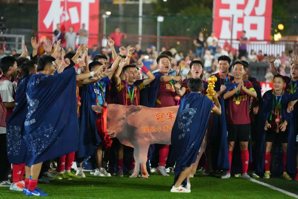 从那一刻起,王香兵与董永恒、甘继泽、王家飞等一众队友就下定决心,要把“村超”的冠军奖品——一头黄牛牵回村。也正是从那时开始,大家调侃起了王香兵:“你叫王香兵,可是你啥时候‘开香槟’呢?”