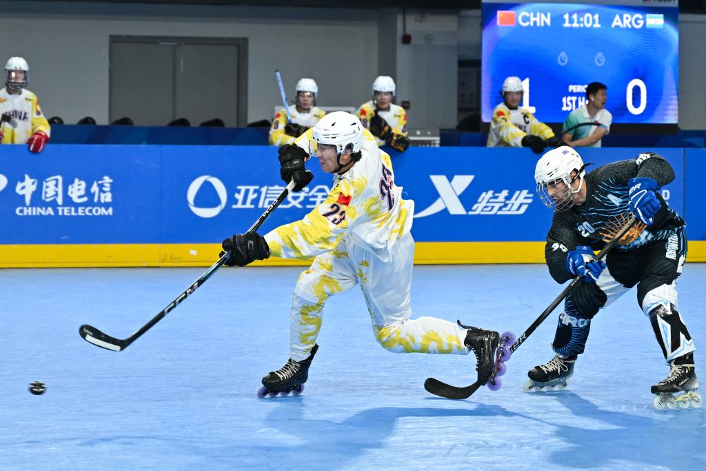 这是中国单排轮滑球队首次登上世运会赛场。本次赛事参赛的共8支队伍,中国队是以东道主身份入围,其他7支队伍均为世界一流强队。小组赛中,中国队先后以1:20负于卫冕冠军美国队、3:5不敌纳米比亚队、1:4负于中国台北队,未能晋级四强。排位赛首战以1:7不敌意大利队后,他们与阿根廷队争夺第七名,遗憾收场。